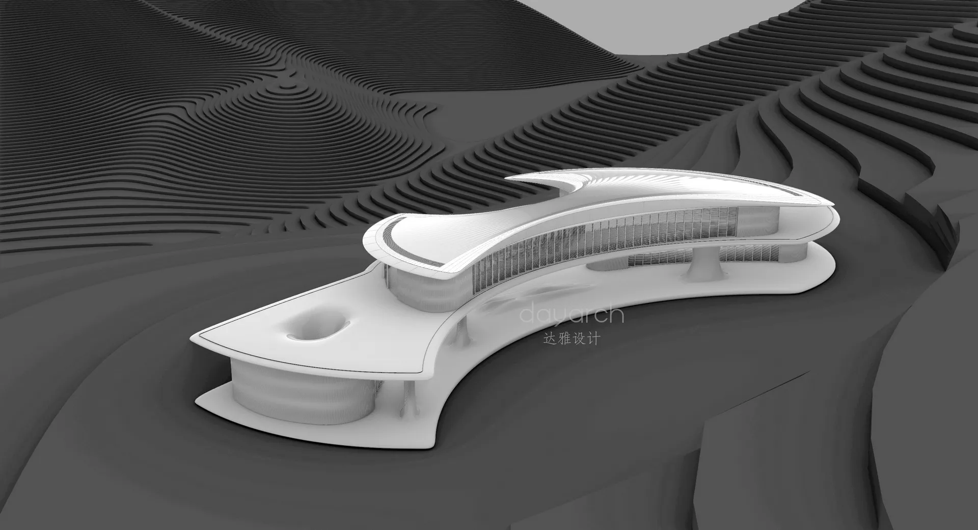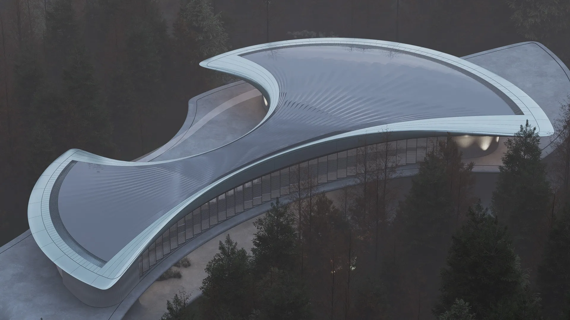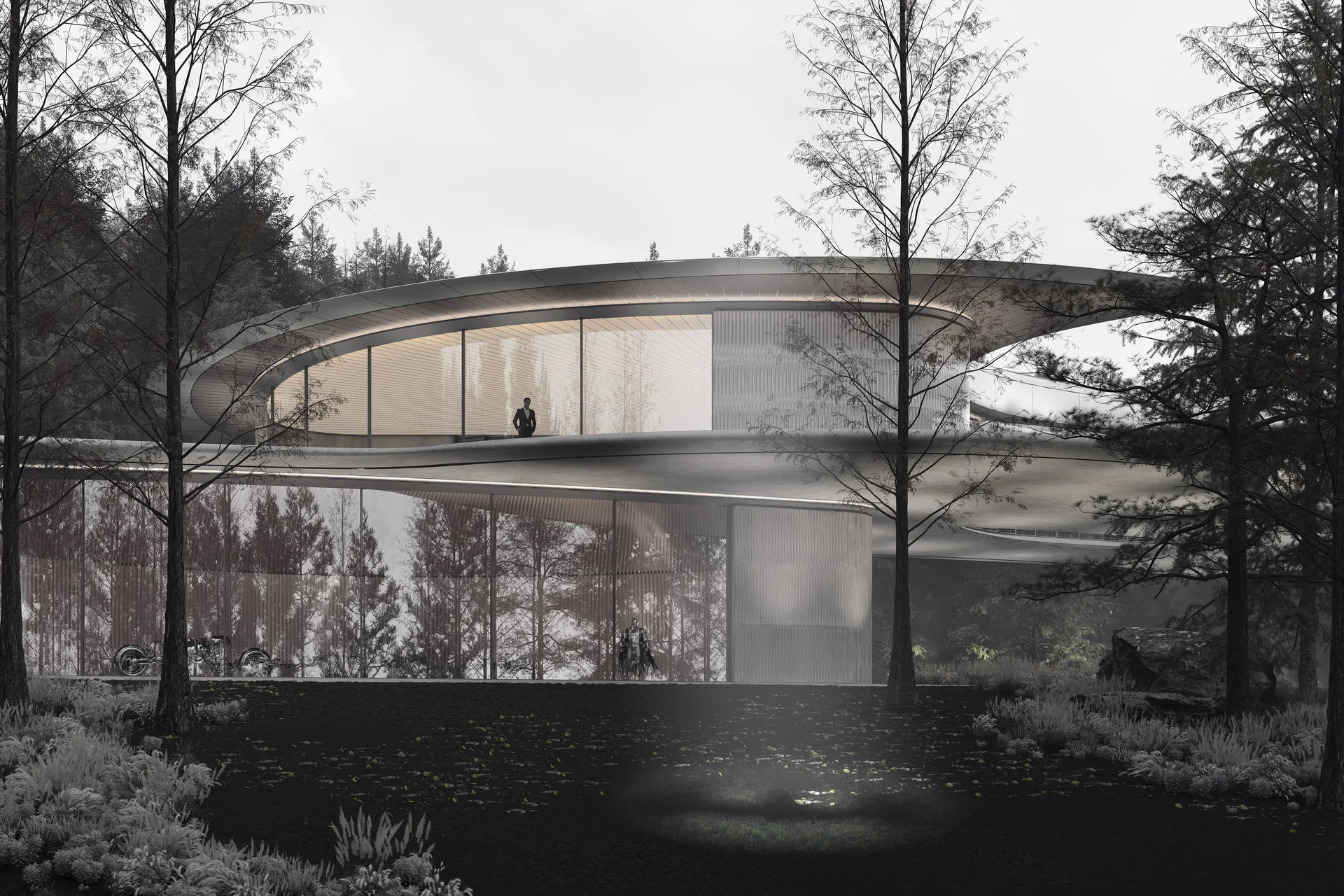 The Bat Base is a conceptual superhero-themed exhibition pavilion. Inspired by the Batarang, its luxurious, minimalist surface space elegantly conceals a subterranean hub, expressing the spatial tension of a dual identity. Beneath this refined facade lies rigorous structural logic: a surface cave integrates rainwater collection and a secret elevator, the roof conceals solar arrays, and adjustable louvers form totemic eyes, projecting a silent, powerful warning to the world.